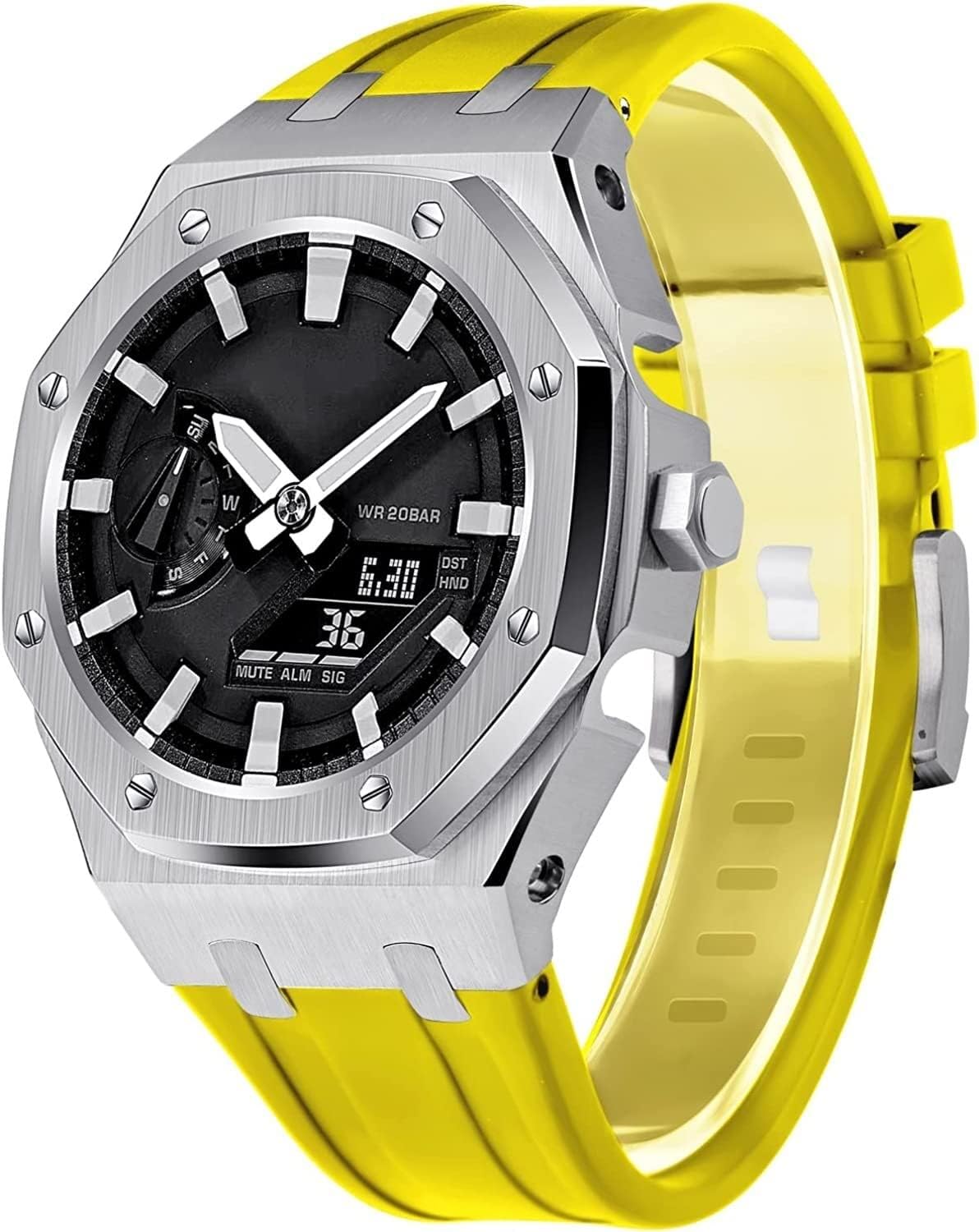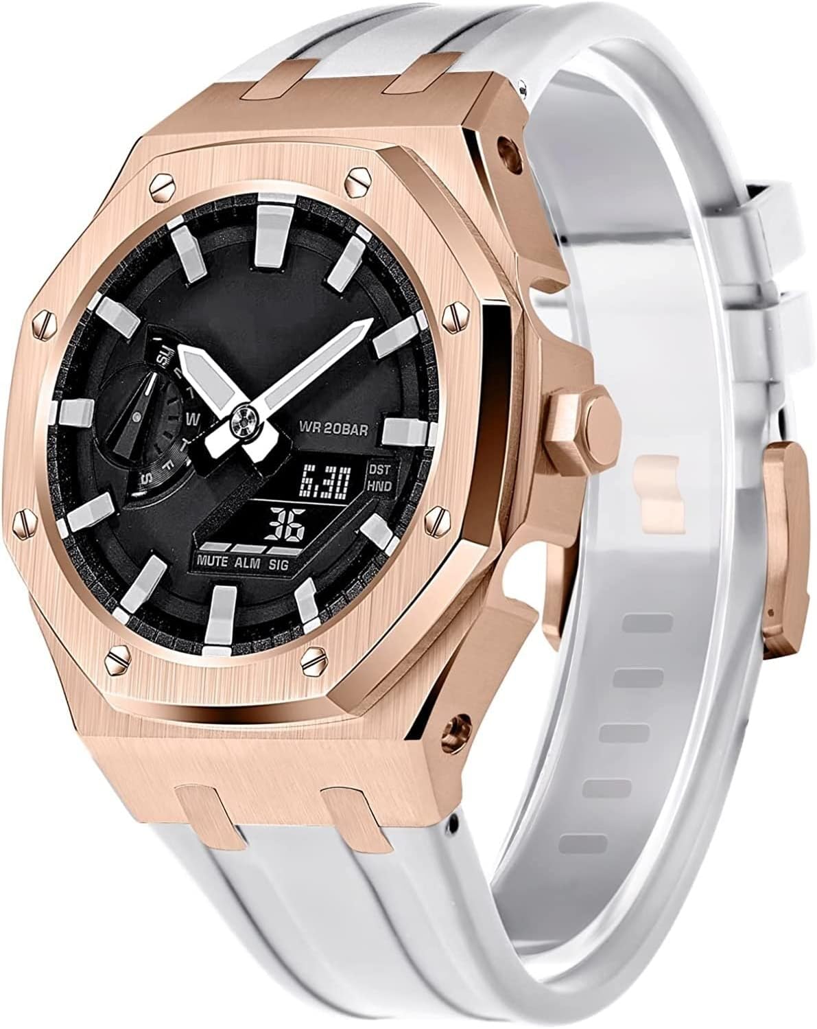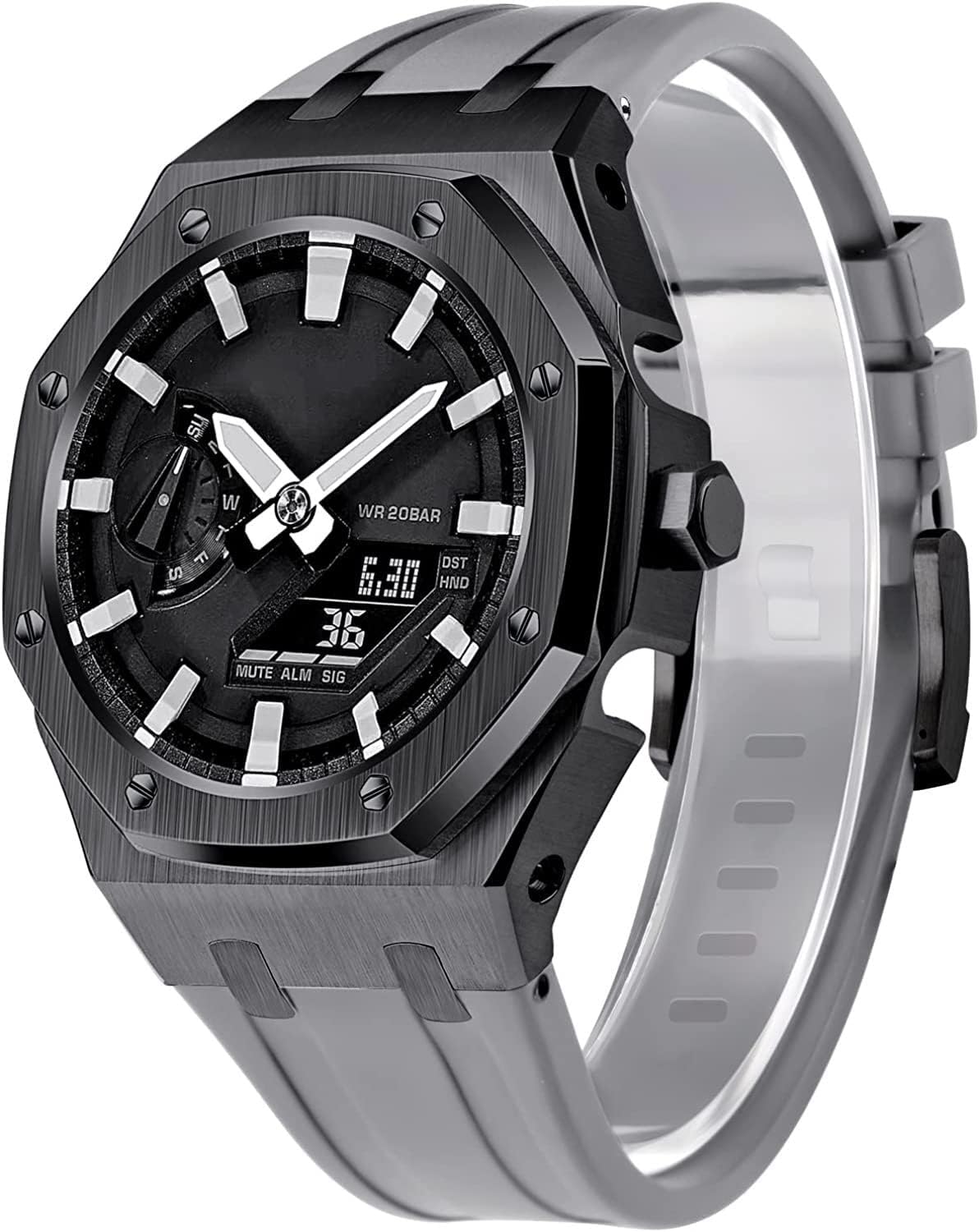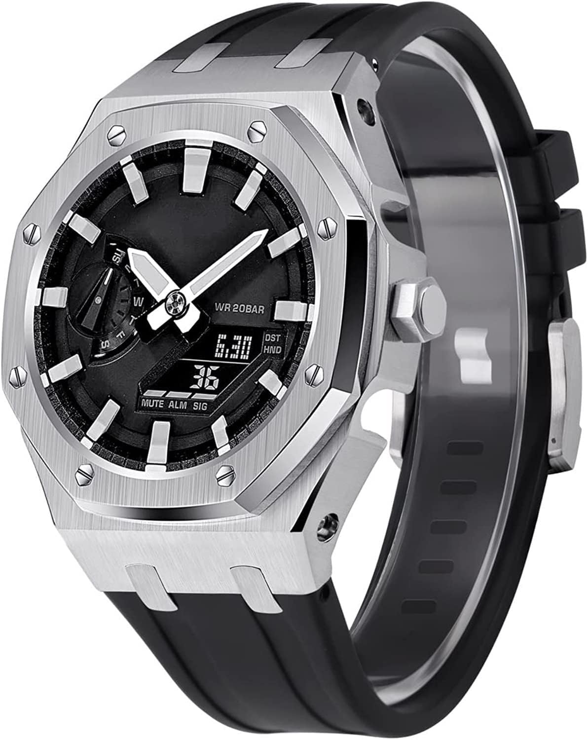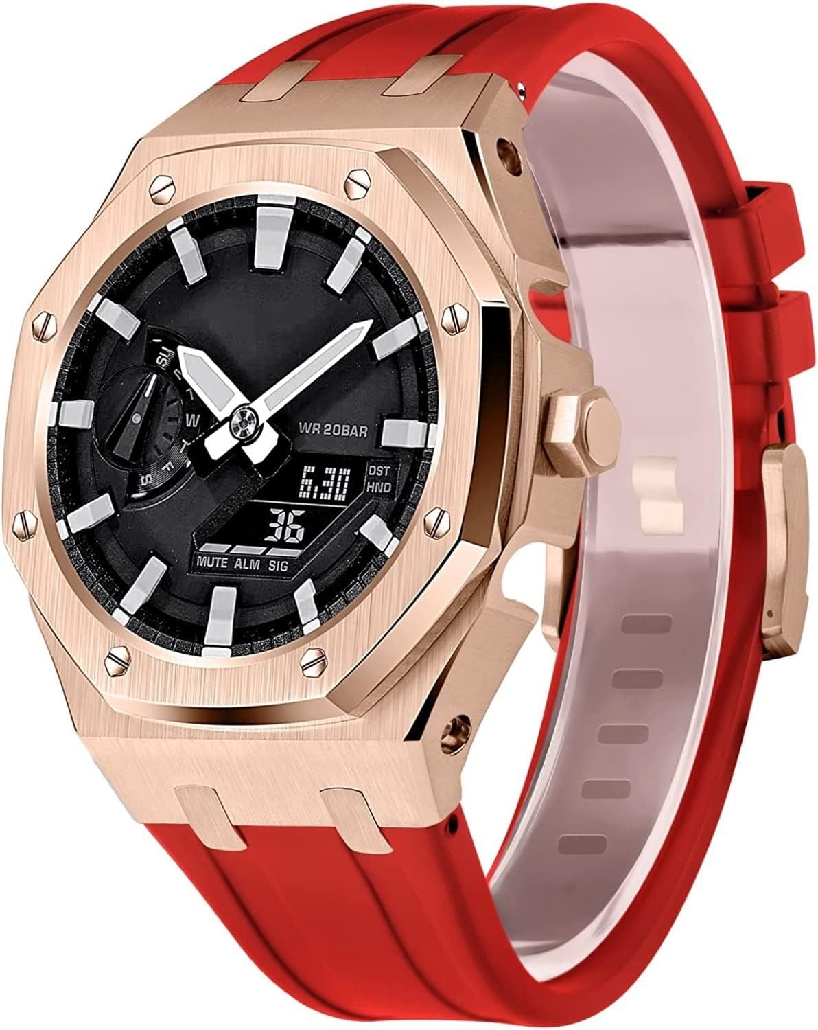 SpecificationModel:ga2100/ga2110,gm2100Case material:316L SSBand material:fluororubber Case THK:4.4mmBand THK:16.5mmWeights:57.3gLength:5.9inch-8.0inch(15cm-20.3cm)Adapted modelsGM2100,Ga-2100vb-1A GA-2100-1A1 GA2100-7A GA2100SKE-7A GA2100-1AJF GA-2100CA-8A GA2100-4A GA2100HC-4A GA2100SU-1APR GA2100-2A GA2100HC-2A GA2100-5A GA2100HT-1A GA2100FR-3A GA2100FR-5A GAE-2100GC-7A GA2100THB-7A GA2100TH-1A GA2100THS-1A GA2100-1A1PRTC GA2100-4APRTC GA2110ET-8A GA2100ET-2A GA2110SU-3APRChic and Contemporary Design: This watch strap boasts a sleek, contemporary design that adds an elevated aesthetic to any timepiece. Its clean lines and subtle details make it the perfect accessory to enhance both casual and formal looks, offering a refined touch to your personal style.Soft and Comfortable Fit: Made for long-lasting comfort, this strap gently conforms to your wrist, ensuring a smooth and pleasant wearing experience throughout the day. Its lightweight design reduces pressure, making it feel barely noticeable, whether you're at work or on the move.Seamless Style Transition: Whether you’re heading to a business meeting or a weekend getaway, this watch strap seamlessly transitions with your wardrobe. Its versatility allows it to complement everything from sleek business attire to relaxed casual outfits, making it an all-round accessory.Reliable and Secure Fastening: Equipped with a high-quality closure system, this strap ensures that your watch stays securely fastened at all times. No matter how active your day is, you can trust that your watch will remain snug and in place without any discomfort.Detailed Craftsmanship: Every aspect of this watch strap reflects thoughtful craftsmanship. From precision stitching to well-balanced proportions, it embodies quality and attention to detail, giving you a premium accessory that both looks and feels exceptional.