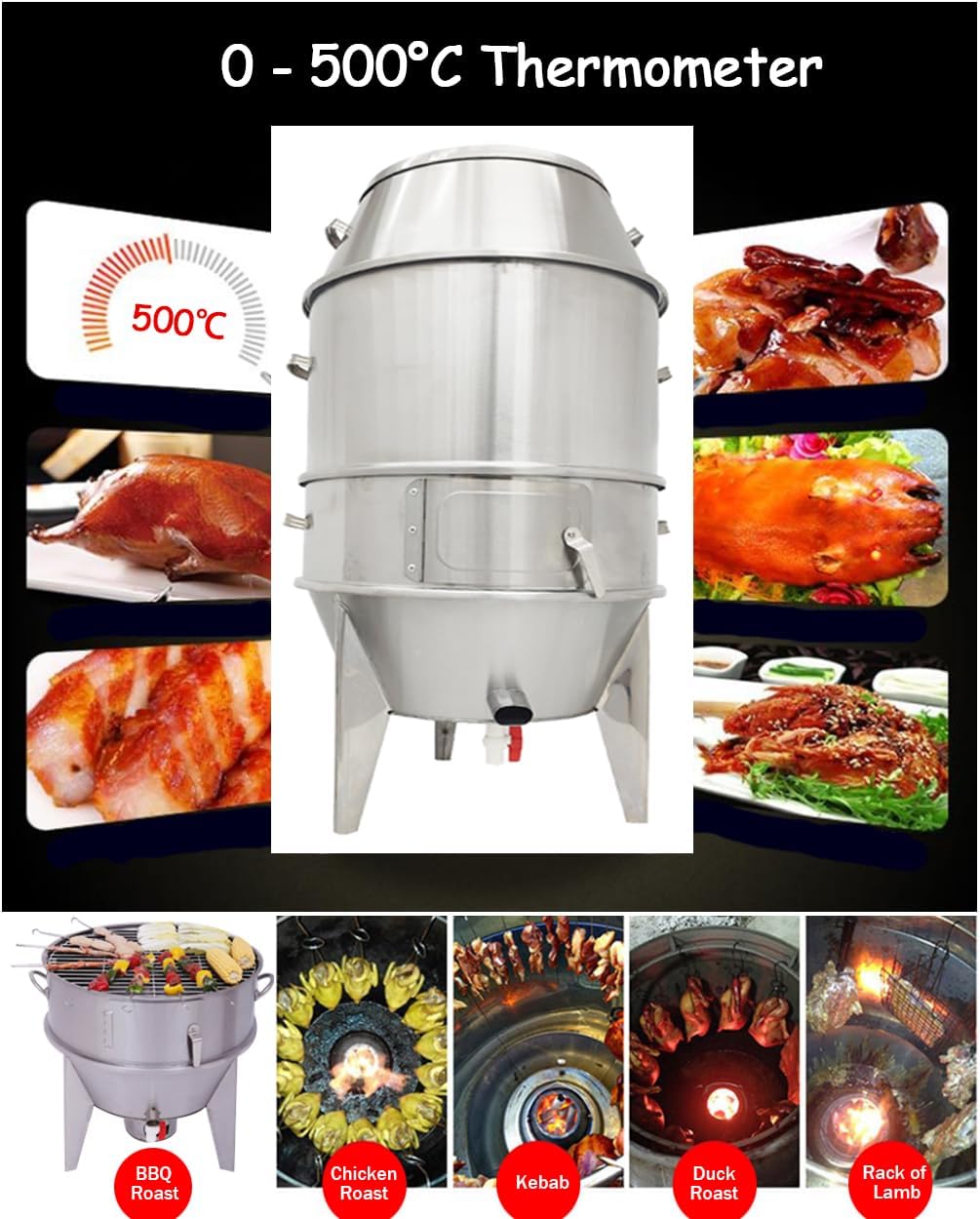 | Other Special Features of the Product | Charcoal Chicken Duck Roaster, Double-Layer Stainless Steel, Temperature Display, Ventilated Furnace Cover, for Duck Chicken Meat Corn Baking |