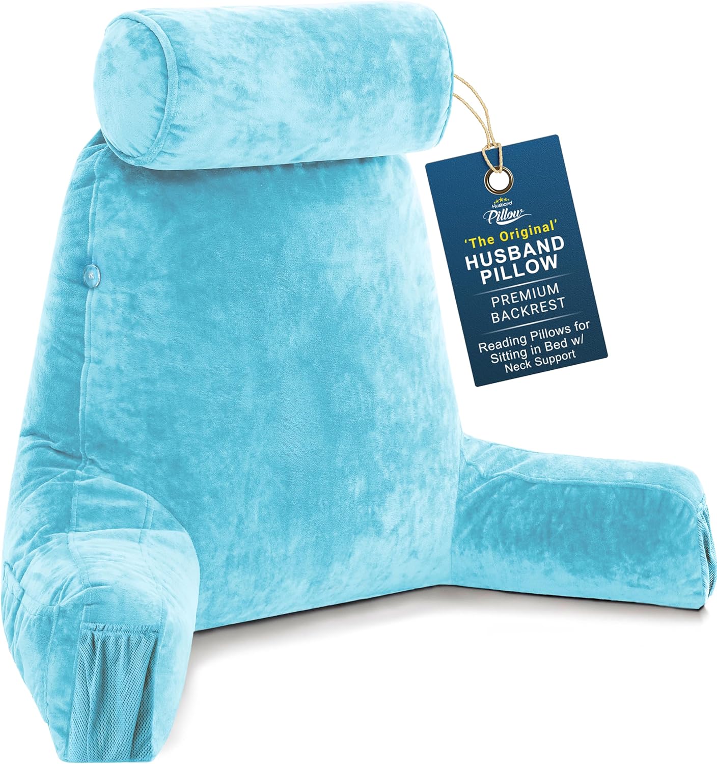 | Special Features | Built-in neck roll reduces strain during reading or TV sessions, Firm fill maintains shape better than budget shredded foam options, Side pockets keep phone remote glasses within easy reach, Standard 18" backrest provides compact support ideal for smaller beds, Zip-off machine washable cover for easy maintenance and hygiene |