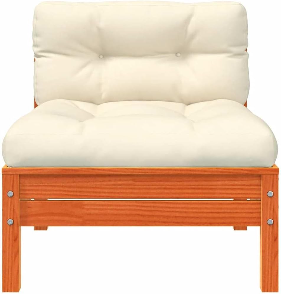This Rustic Corner Garden Sofa is a great addition to any outdoor spot, mixing style and practicality perfectly. With its lovely wax brown solid pine wood build and soft cream cushions, it gives off a warm, welcoming vibe that’sfor chilling out in gardens, patios, or terraces.Adjustable Modular Design: Easy to set up your space just how you want it.High-Quality Materials: Solid pine wood that stands up to the elements for long-term use.Convertible Footstool: Use this piece for seating or as a footrest – your choice!Easy to Clean: Removable cushions make upkeep a breeze, so your stuff always looks fresh.Spacious Seating: Fits up to two people comfortably for a nice chill-out session.Color: Brown Shape: RectangularMaterial: Solid Pine WoodFinish: Waxed Indoor/Outdoor: Indoor / OutdoorCover Included: NoMaximum Number of People: 2Maximum Weit: 242.5 lb#Dimensions: 9.8 x 29.3 x 9.7 in (W x L x H)Weight: 53.13 lbsSwings: NoDelivery Contains: 1 x Corner sofaAssembly Required: YesRecommended Number of People for Assembly: 2