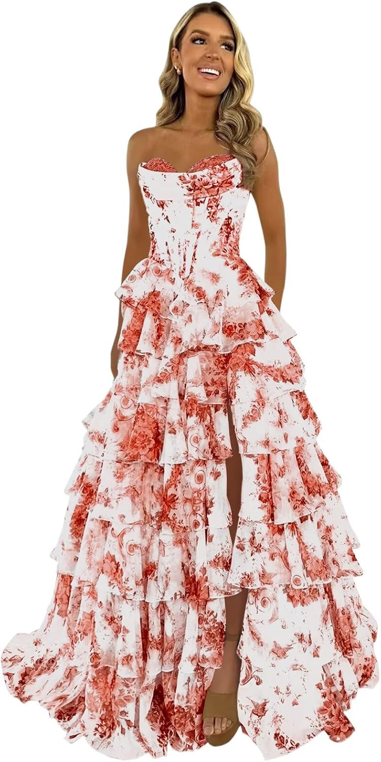 Welcome to Wenlion! Floral Prom Dresses 2026 Long Tiered Ruffle Prom Dresses Turn heads and dazzle the crowd in this stunning Floral Prom Dress 2026, designed for those who want to make an unforgettable statement. This gown effortlessly combines modern sophistication with timeless glamour, making it the perfect choice for proms, formal parties, or any special evening event. Key Features: · Strapless&Corset · Printed Floral Fabric · Flowing A-Line Tiered Silhouette · Sexy Slit Detail: · Floor-Length with train Design: Please check the size chart in pictures carefully before placing an order. US00: Bust 31 inches,Waist 24.25 inches, Hips 34.5 inches US0: Bust 32 inches,Waist 25.25 inches, Hips 35.5 inches US2: Bust 33 inches,Waist 26.25 inches, Hips 36.5 inches US4: Bust 34 inches, Waist 27.25 inches, Hips 37.5 inches US6: Bust 35 inches, Waist 28.25 inches, Hips 38.5 inches US8: Bust 36 inches, Waist 29.25 inches, Hips 39.5 inches US10: Bust 37.5 inches, Waist 30.25 inches, Hips 41 inches US12: Bust 39 inches, Waist 32.25 inches, Hips 42.5 inches US14: Bust 41 inches, Waist 34.5 inches, Hips 44.5 inches US16: Bust 43.25 inches, Waist 37 inches, Hips 46.7 inches US18: Bust 45.5 inches, Waist 39.5 inches, Hips 49 inches US20: Bust 47.7 inches, Waist 42 inches, Hips 51.1 inches US22: Bust 50 inches, Waist 44.5 inches, Hips 53.5 inches US24 : Bust 53 inches, Waist 47.6 inches, Hips 56.3 inches US26: Bust 56 inches, Waist 50.8 inches, Hips 59.5 inches US28: Bust 59 inches, Waist 54 inches, Hips 62.5 inches If you need to customize, please contact me and tell me your measurements. If you have any question,please contact me!