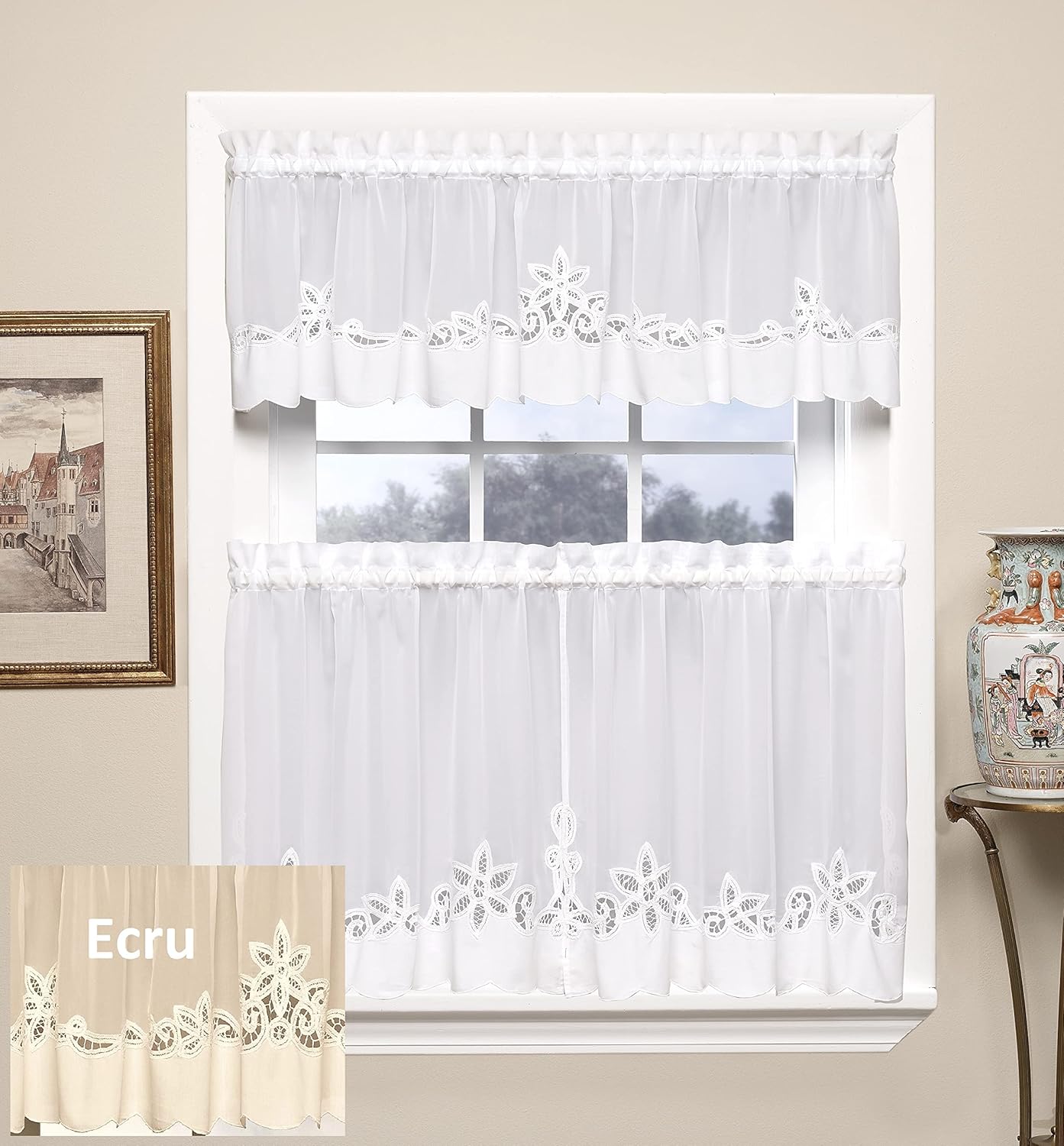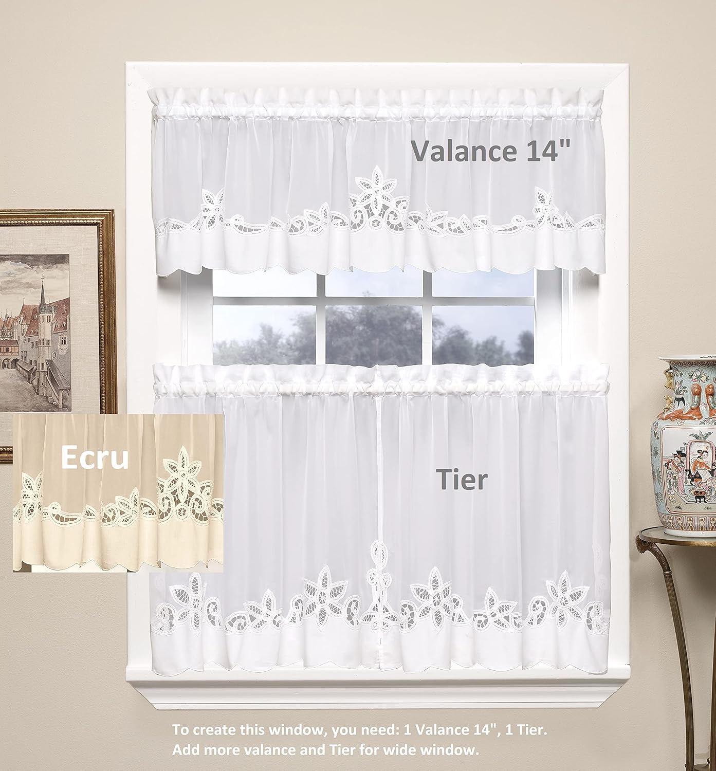 Plymouth Window Curtain Collection by Today's Curtain, a truly traditional Battenberg lace, sewn onto a voile body. This timeless classic will be a wonderful addition to any room.