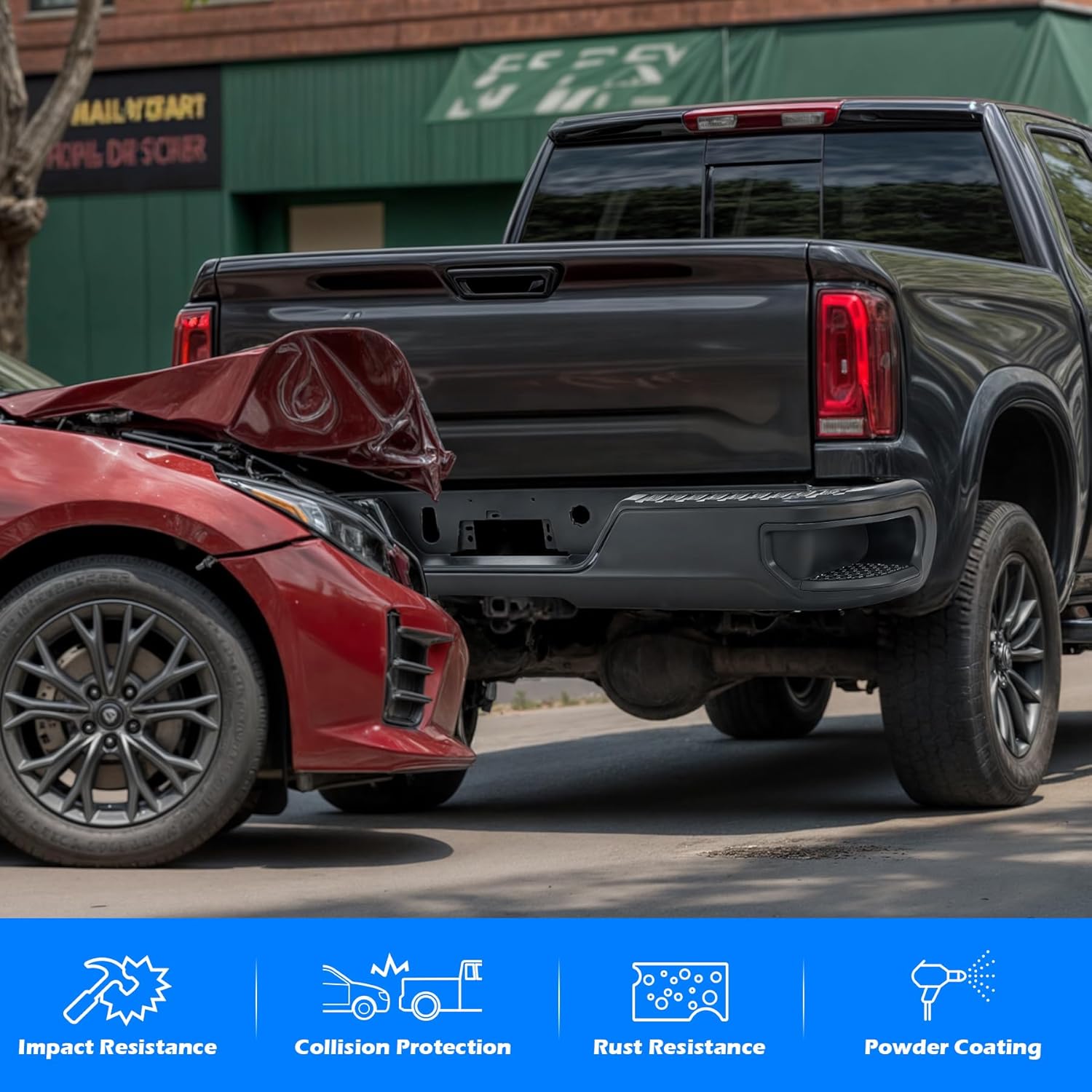 Enhance your truck's protection and style with our heavy-duty rear bumper, designed for 2019-2023 Chevy Chevrolet Silverado 1500 Gmc Sierra 1500 & 2020-2024 Silverado Sierra 2500 3500. Made from high-strength steel, this premium bumper absorbs impact, shielding your truck from dents, scrapes, and costly damage while maintaining its rugged appearance. The nickel-plated finish resists corrosion, keeping your bumper looking new through all kinds of weather. Plus, the included license plate lights ensure your vehicle stays visible, even in low-light conditions. Upgrade your truck today for maximum protection, improved functionality, and a long-lasting look that stands out on the road.